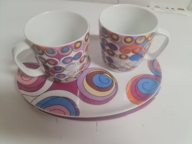 Duas canecas e dois pratos gato preto