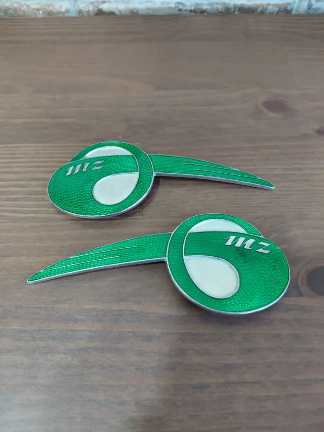 Conjunto de dois emblemas da marca MZ. - Cor verde vibrante com detalhes em branco. - Design com o logo MZ.