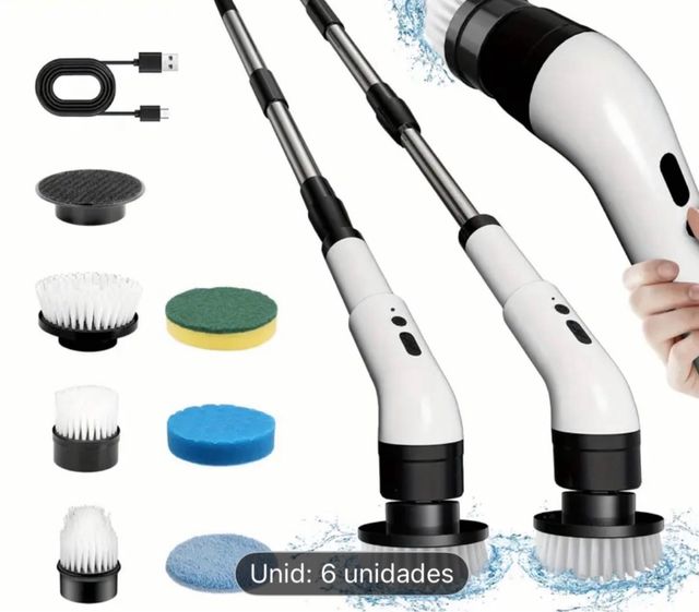 Detalhes do produtoConjunto de escova elétrica com múltiplos acessórios para limpeza.