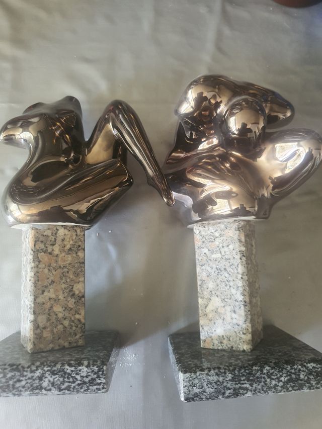 Duas estatuetas com pé em mármore em representação do homem e da mulher