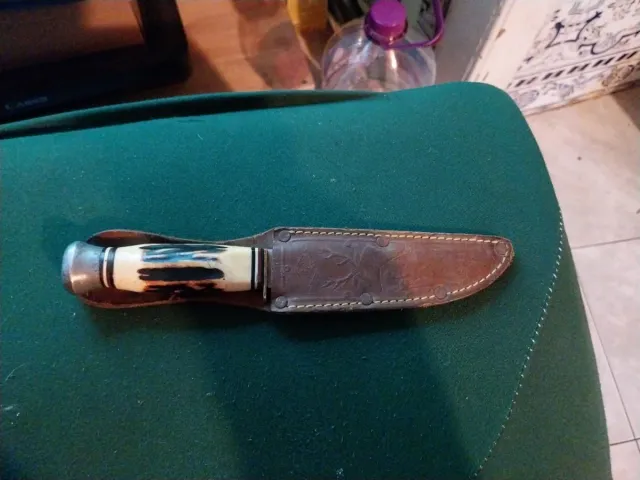 Faca antiga com cabo de osso e bainha