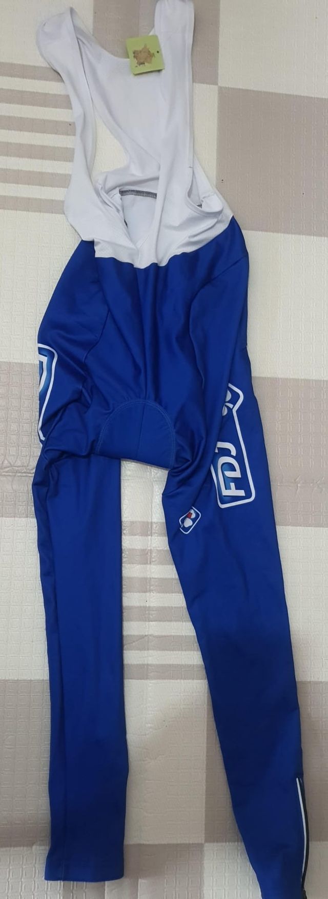 Detalhes do produtoProfessional-style cycling bib tights inspired by Groupama-FDJ, featuring a bold royal blue and white design with FDJ team logos. These full-length bib tights are designed for performance, comfort, and style during cooler weather rides.