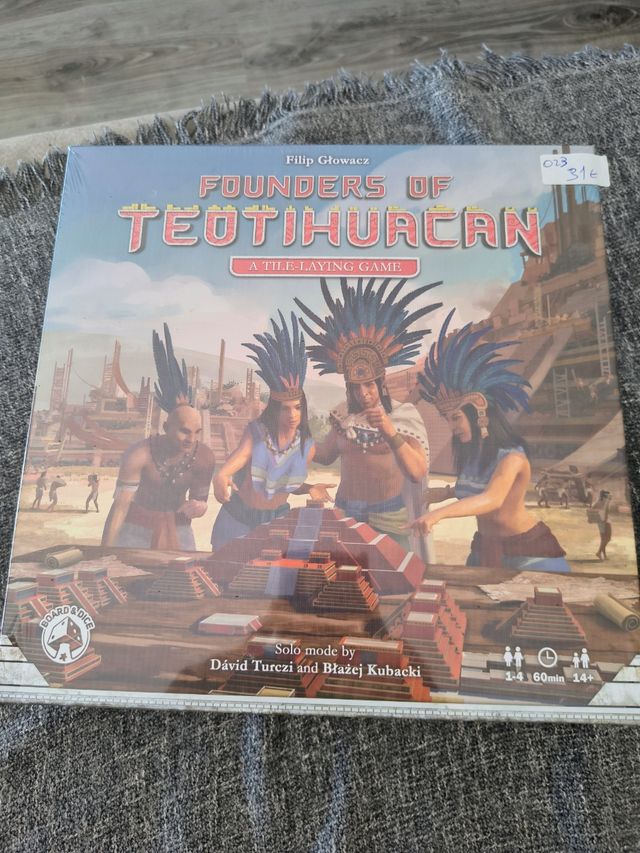 Jogo de tabuleiro Founders of Teotihuacan. - Jogo de colocação de peças. - Para 1-4 jogadores. - Tempo de jogo: 60 minutos. - Idade: 14+.