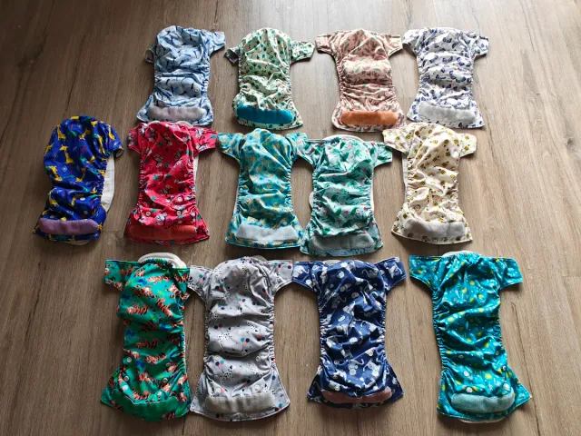 Detalhes do produtoConjunto de fraldas reutilizáveis em tamanho único (onesize).