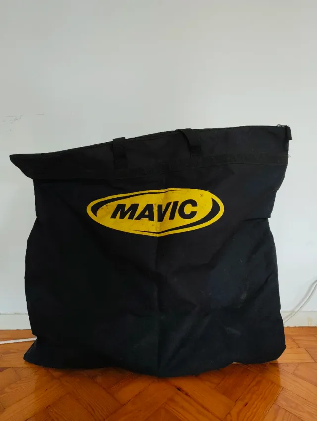 Saco de transporte para ruedas de bicicleta de la marca Mavic. Es de color negro y tiene el logo de la marca en amarillo. - Color: Negro - Logo: Amarillo