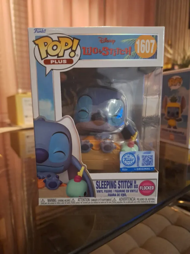 NovoDetalhes do produtoFigura Funko Pop! de Stitch dormido, con acabado aterciopelado (flocked).