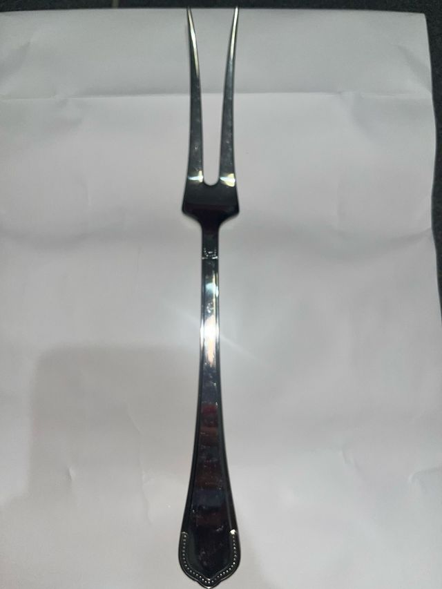 Garfo trinchante na cor prateada. Nunca foi usado.