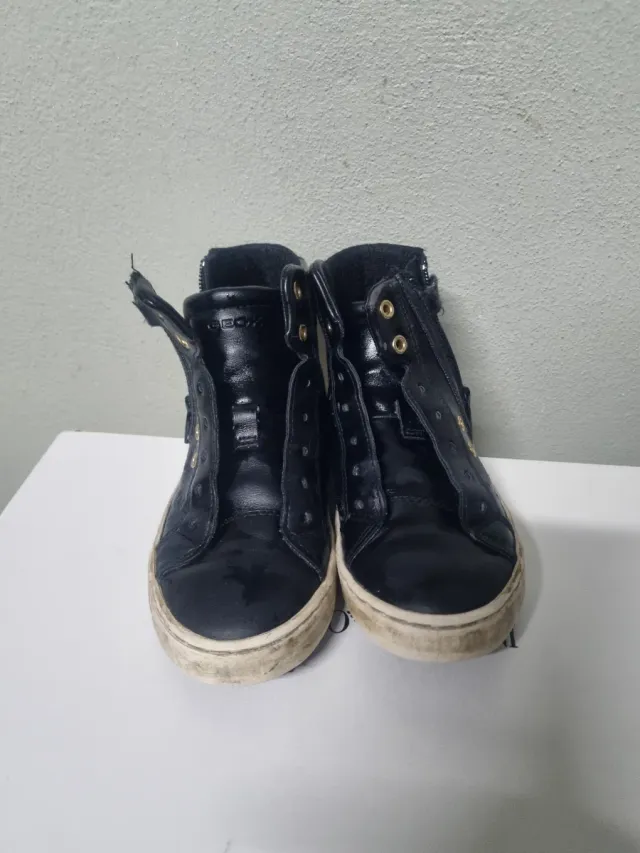 Ténis Geox em pele preta, tamanho 31. Com fecho lateral. - Pele preta - Tamanho 31 - Fecho lateral