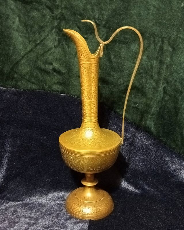 Detalhes do produtoBelíssimo gomil com 27 cm de altura, 10 cm de diâmetro, 600 gr de peso, ricamente decorado com minuciosos pavões e motivos vegetalistas.