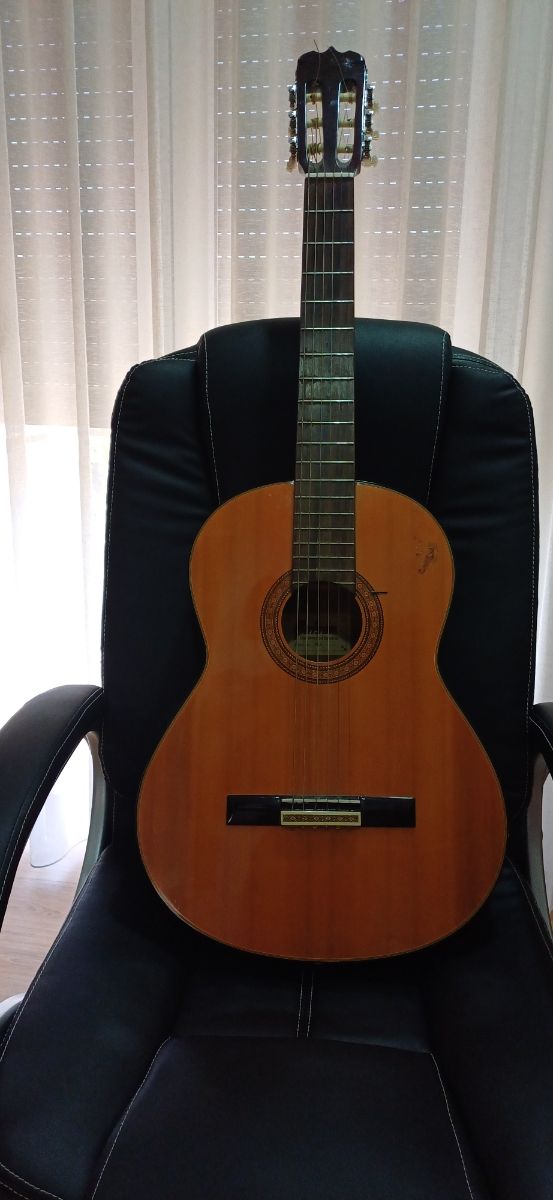Guitarra antiga, com um som épico. Tem algumas marcas de uso. O afinador manual da corda Re precisa de ser reparado. É algo simples