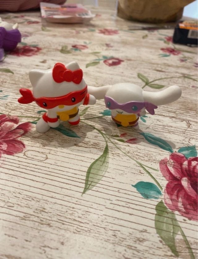 Figuras colecionáveis da Hello Kitty e Cinnamoroll com tema ninja McDonalds.