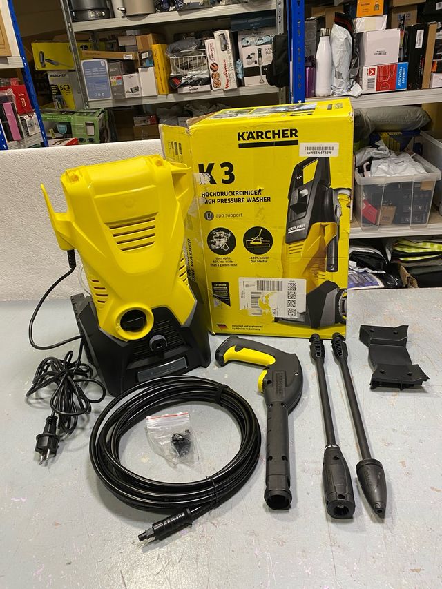 Detalhes do produtoHidrolimpiadora Kärcher K 3, presión máx. 120 bar, caudal 380 l/h, rendimiento de superficie 25 m²/h, filtro de agua, peso 6 kg, manguera y pistola de alta presión, boquilla turbo, lanza pulverizadora