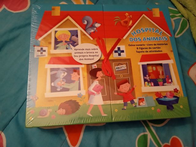 Detalhes do produtoConjunto de atividades Hospital dos Animais. Inclui caixa-cenário, livro de histórias, 8 figuras de cartão e tapete de atividades.