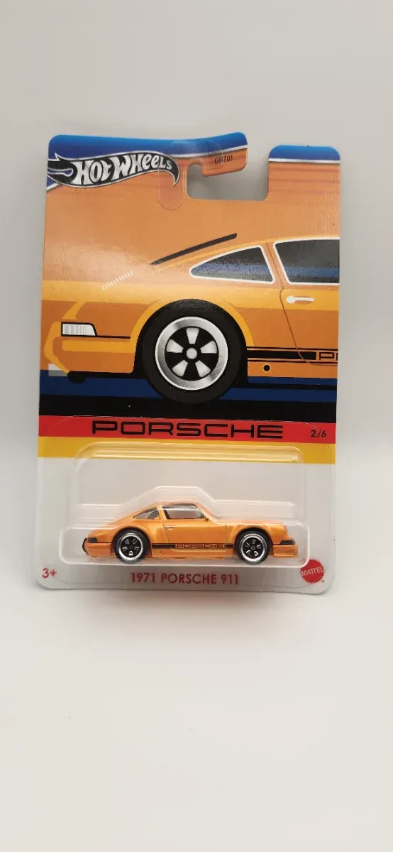 Detalhes do produtoMiniatura do icónico Porsche 911 de 1971 da Hot Wheels. Esta peça colecionável apresenta um acabamento vibrante em laranja.