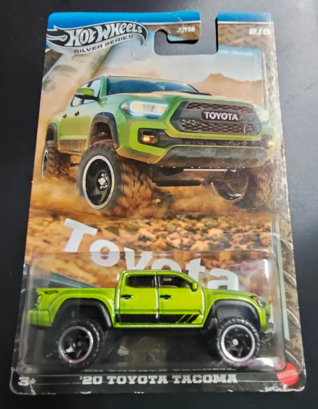 Miniatura Hot Wheels do Toyota Tacoma 2020. - Série Silver. - Cor verde metálico. - Detalhes em preto nas laterais e rodas.