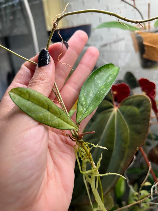 Detalhes do produtoCorte de Hoya crassipetiolata splash a enraizar em água. Em crescimento