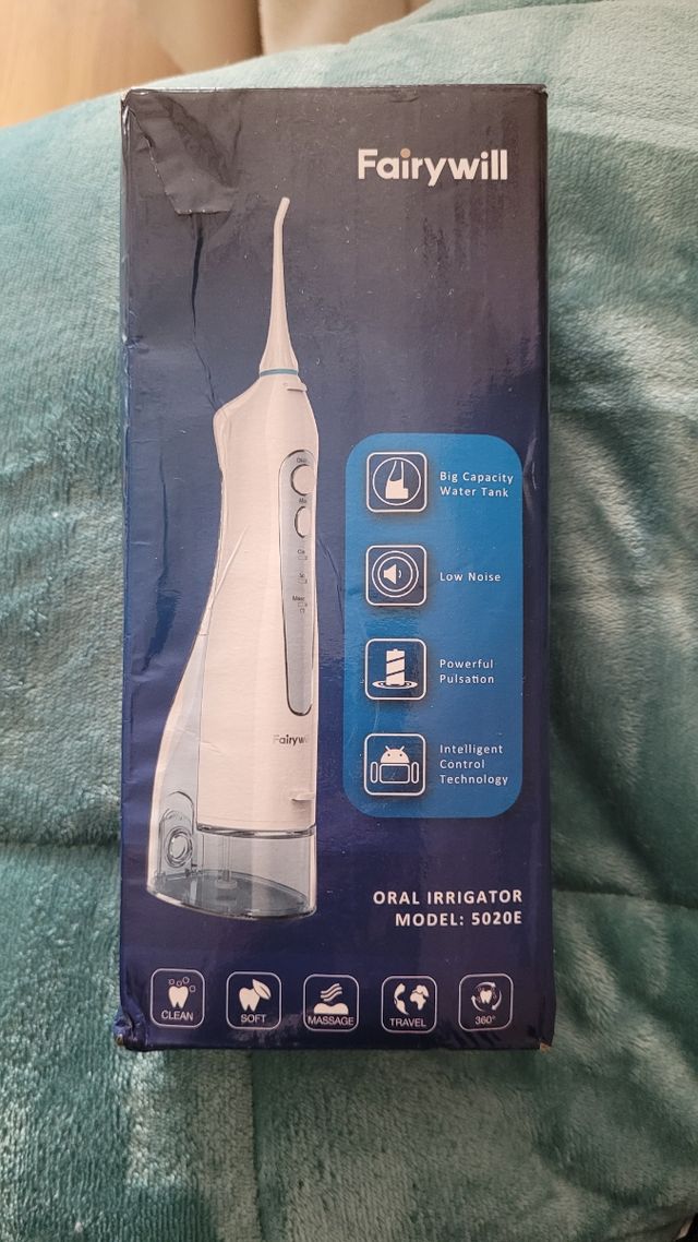 Irrigador oral da Fairywill usado apenas 2 vezes, como novo. Tem 7 recargas novas para usar.