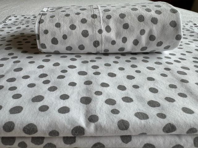 Jogo de lençóis em algodão em tons de branco e cinza. Algodão de excelente qualidade. Cama de solteiro : 90 cm x 190 cm Usado, mas bem preservado.