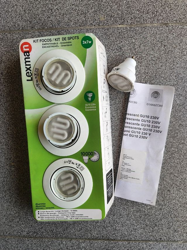 Kit de 3 focos encastráveis e orientáveis Lâmpadas led fluorescentes económicas GU10 230v Oferta de 1 lâmpada extra Marca Lexman
