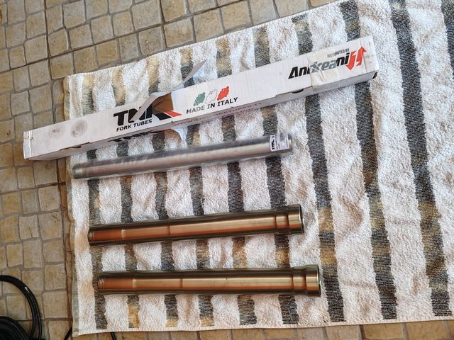 Detalhes do produtoConjunto de tubos de garfo dianteiro para Ducati 996. Estão incluídos dois tubos de garfo em excelente estado e um kit de tubos de garfo da marca TK. - Feitos na Itália. - Inclui 2 tubos de garfo e 1 kit de tubos. - Ótimo estado.