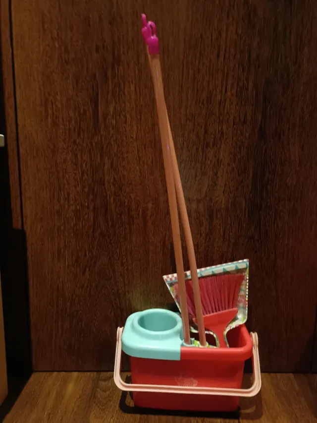 Kit de limpeza infantil da Imaginarium. - Balde com compartimento para água. - Vassoura e pá. - Cabo com detalhe divertido.