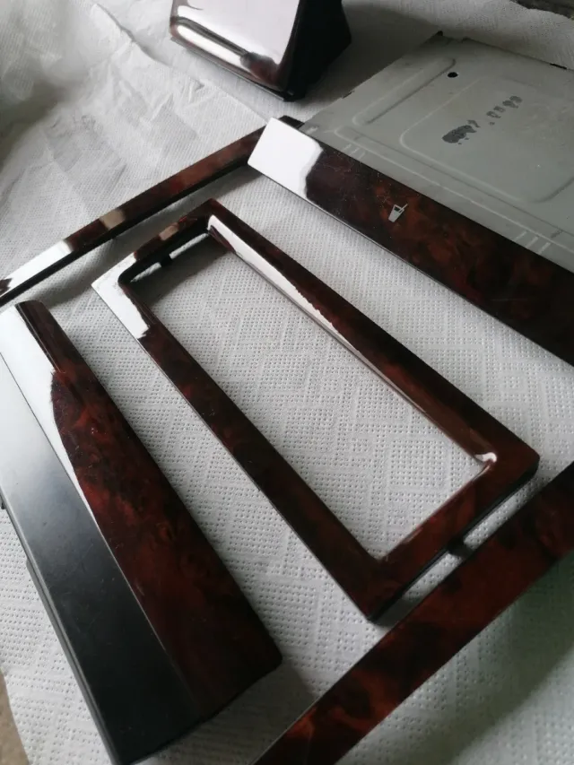 Conjunto de peças de acabamento em madeira para consola de radio Golf 4, em muito bom estado.