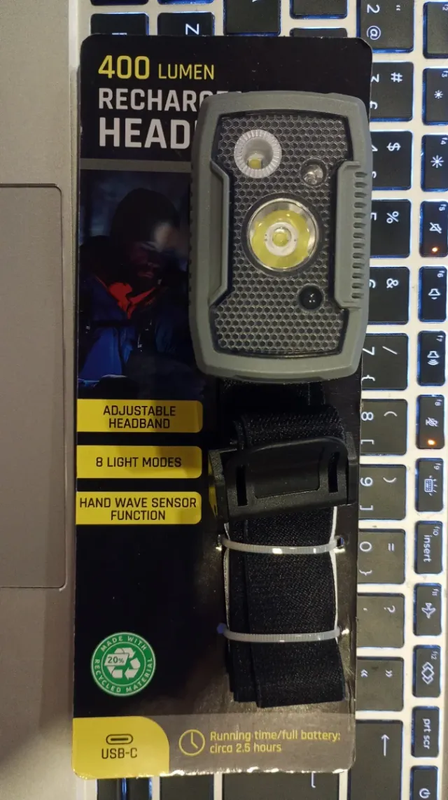 Detalhes do produtoLanterna de cabeça recarregável com 400 lúmens. Possui ajuste de intensidade e sensor de movimento.