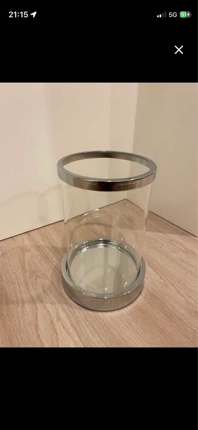 Lanterna de vela em vidro e metal prateado