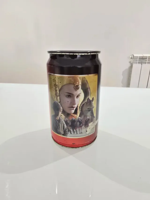 Lata de coleção temática do filme Star Wars Episódio 1. - Design com personagens do filme. - Ideal para colecionadores.