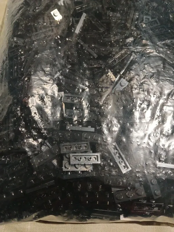 Conjunto de 50 peças de Lego na cor preta, tamanho 1x3. São peças novas. - Cor: Preto - Tamanho: 1x3 - Quantidade: 50 unidades