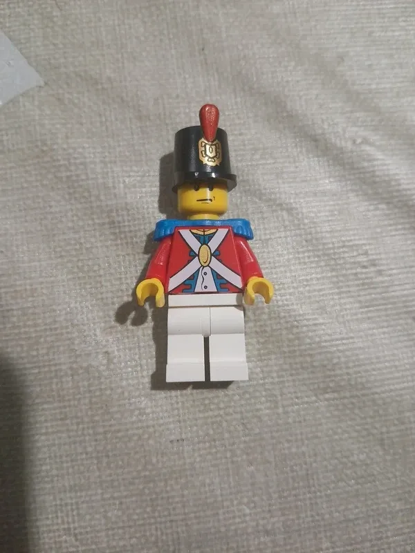 Detalhes do produtoFigura de Lego de un soldado pirata con expresión de enfado.
