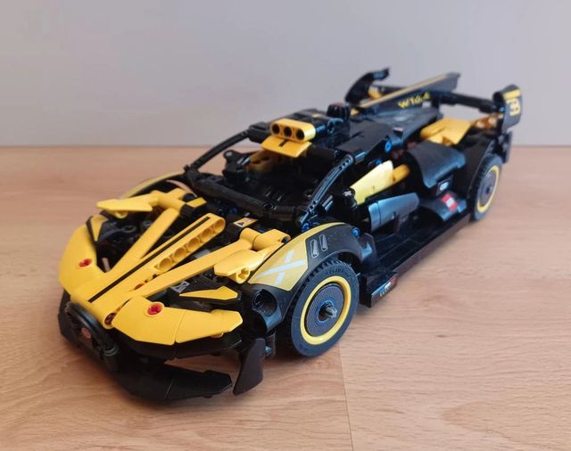 Lego Technic Bugatti Bolide. - Modelo 42151. - Design icônico em preto e amarelo. - Construção em peças Lego Technic.
