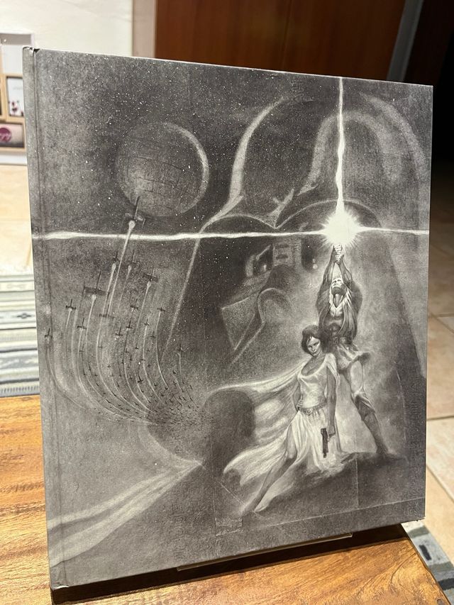 Livro de capa dura com ilustrações de Star Wars. Uma peça rara para colecionadores. - Ilustrações em preto e branco. - Tema Star Wars.