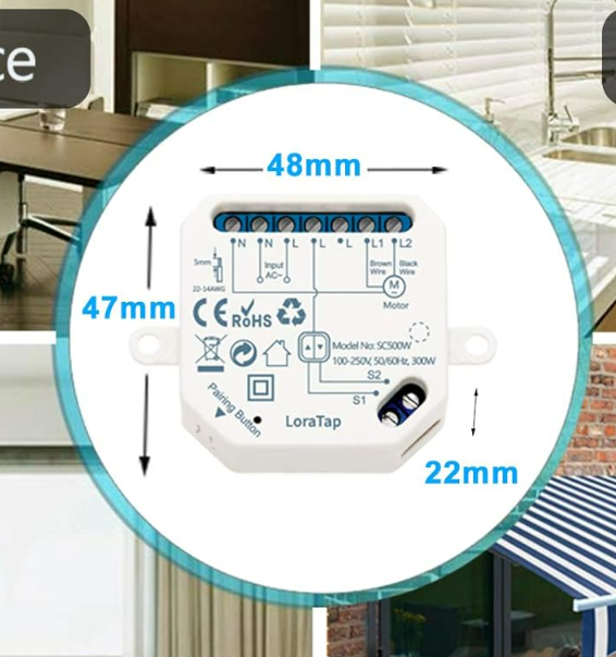 Loratap interruptor de estores WiFi, 4 peças relá de estores. Temporizador inteligente para cortina eletrica. Controlo remoto por telefone.