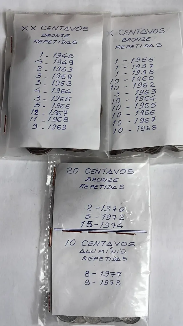 - Moedas de XX centavos em bronze, repetidas, de 1945 a 1969.