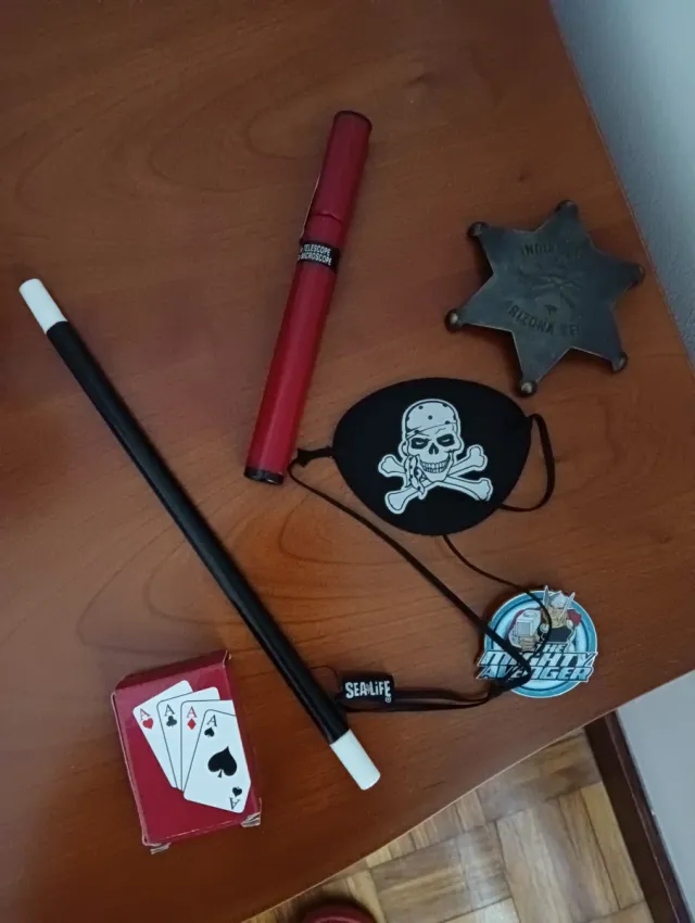 Lote Brinquedos: Varinha Mágica, Baralho, Patch