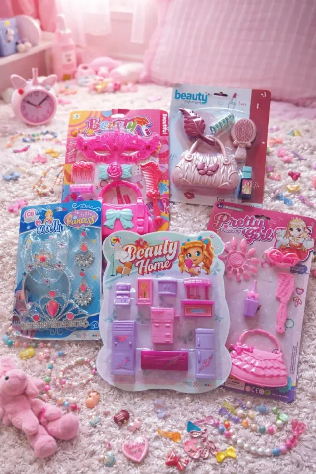 Conjunto de brinquedos em embalagens originais. - Brinquedos de beleza e casa. - Inclui acessórios como bolsas, joias e móveis de casa de bonecas. Preço pelo lote.