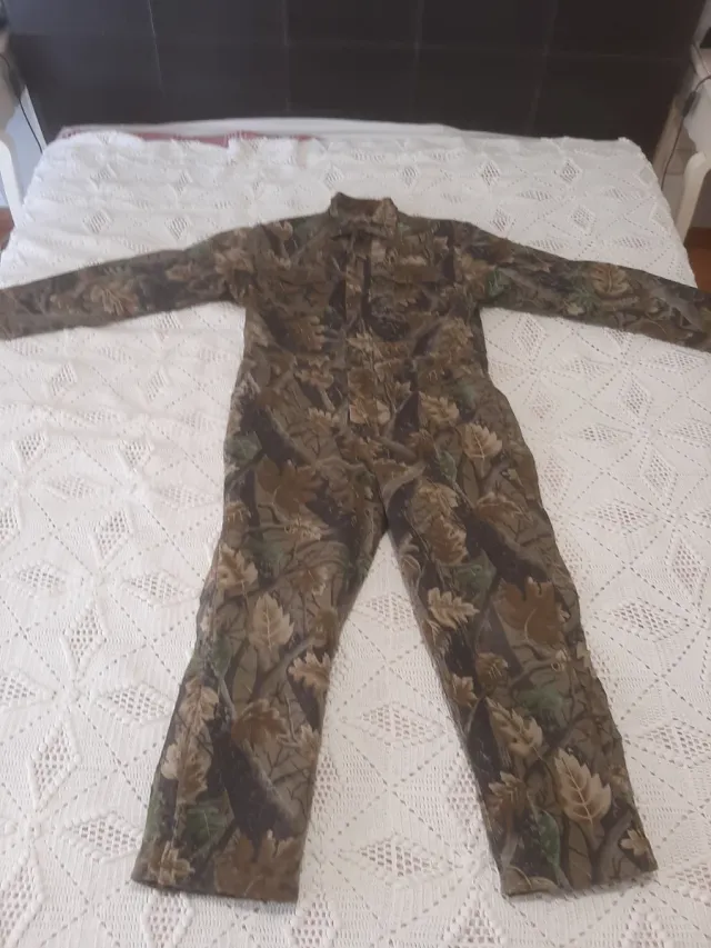 Detalhes do produtoMacacão térmico forrado por dentro, algodão por fora (silencioso)com padrão de reeltree XL( mas veste L) marca Master, ideal para caça de espera aos javalis.