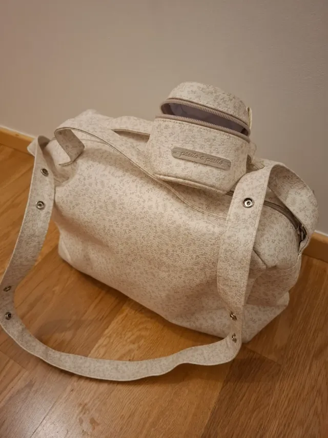 Conjunto de mala de maternidade, porta chupeta e muda fraldas. - Mala com padrão floral discreto. - Inclui muda fraldas e porta chupeta a condizer.