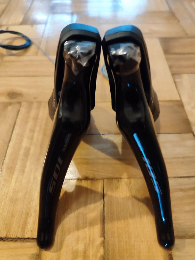 Detalhes do produtoManetes de estrada Shimano 105 R7000 em preto.