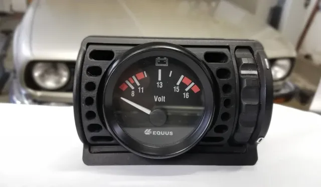 Suporta de manómetro temperatura, voltagem ou turbo, diseñado para BMW E30. Presenta un diseño robusto y moderno. - Indicador de voltaje. - Carcasa negra. - Escala de 8 a 16 Volt.