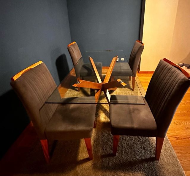 Mesa de jantar 6 lugares madeira e vidro