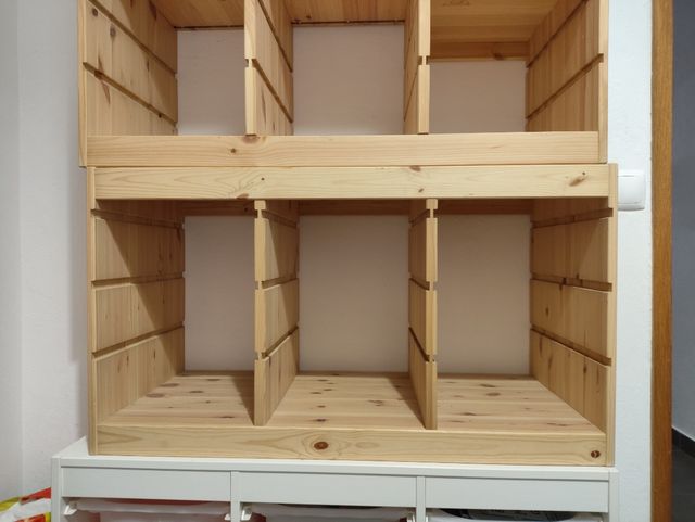 Detalhes do produtoMóvel de arrumação em madeira, ideal para organizar brinquedos e outros objetos. O design modular permite várias configurações.
