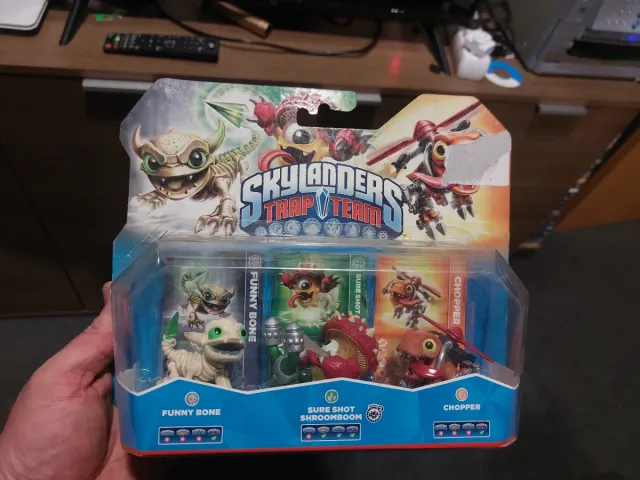 Pack de figuras Skylanders Trap Team. - Incluye Funny Bone, Sure Shot Shroomboom e Chopper.