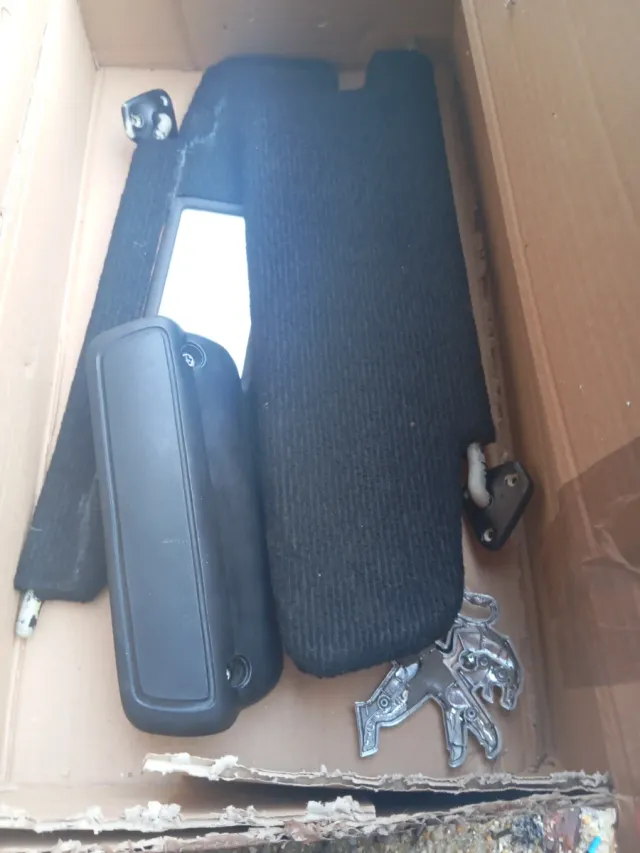 Conjunto de palas de sol para Peugeot e símbolo. - Palas de sol de tela negra. - Símbolo Peugeot metálico.