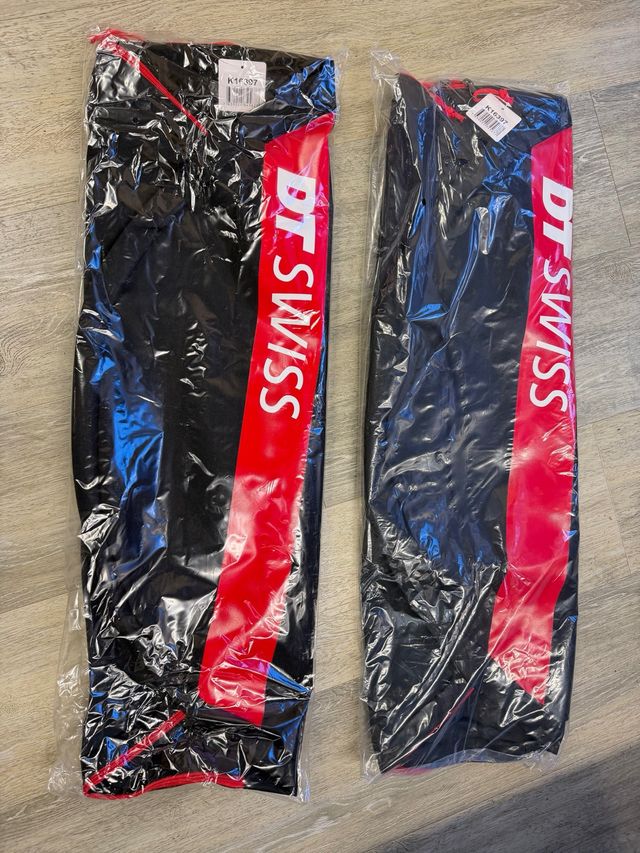 Par de sacos ruedas da DT Swiss. - Ruedas de Carretera - Nuevos - Color negro con detalles en rojo. - Logotipo DT Swiss en blanco. - Estão embalados nunca usados