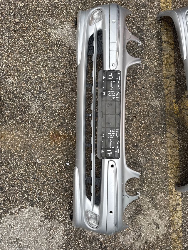 Para-choques frontal de Mercedes-Benz em cor prata. - Peça de substituição. - Inclui grelha e suporte de matrícula.
