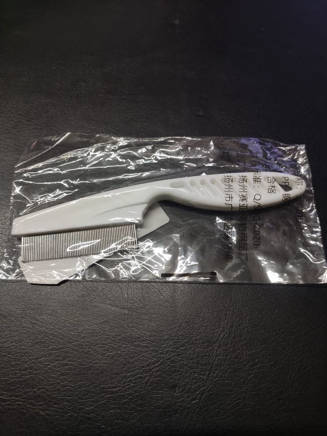 Pente para usar em animal, para remoção de pelos, pulgas e carraças.