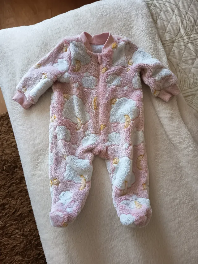 Detalhes do produtoPijama de bebé da marca Shein, com um padrão divertido de nuvens.