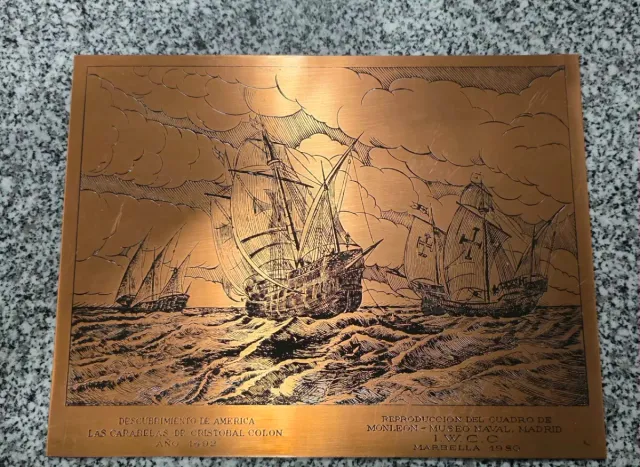 Placa Cobre Grabada Descubrimiento América